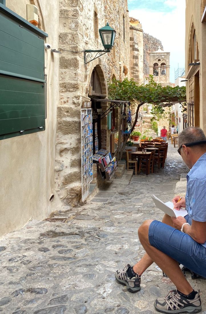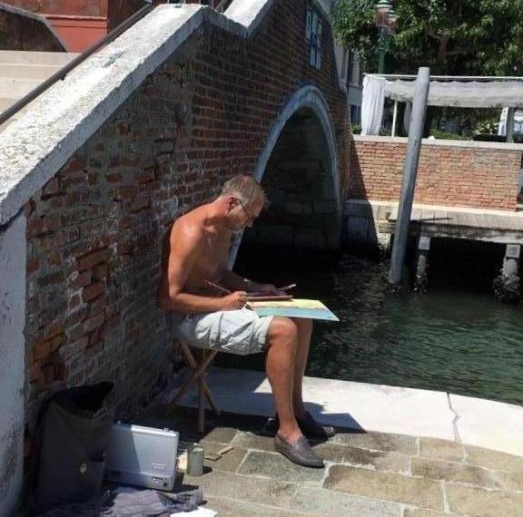 Seit 2021 bin ich mit Skizzenbüchern unterwegs und halte Eindrücke, Erlebnisse, Erfahrungen fest. Besondere Motive begann ich in Guache, Acryl und Öl in grösseren Formaten umzusetzen und entdeckte so für mich die Malerei. Zwei Mal-Reisen nach Venedig mit Freunden brachten mich kräftig voran. Zusammen stellten wir 2021 und 2022 erfolgreich unsere Bilder aus; etliche meiner Bilder haben neue Wände gefunden. Nun folgt 2026 die erste Einzelausstellung.